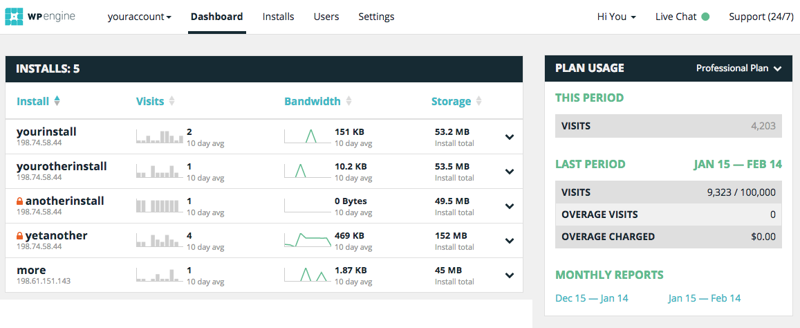 Having your WordPress website preinstalled for you is a nice feeling, as you can jump right into customizing your website. Since WP Engine focuses only on WordPress installations, this means you won’t be able to upload your Linux- or Windows-based website. If you’re looking for a place to do that, you’ll have to look elsewhere, such as at 1&1 or IdeaHost.